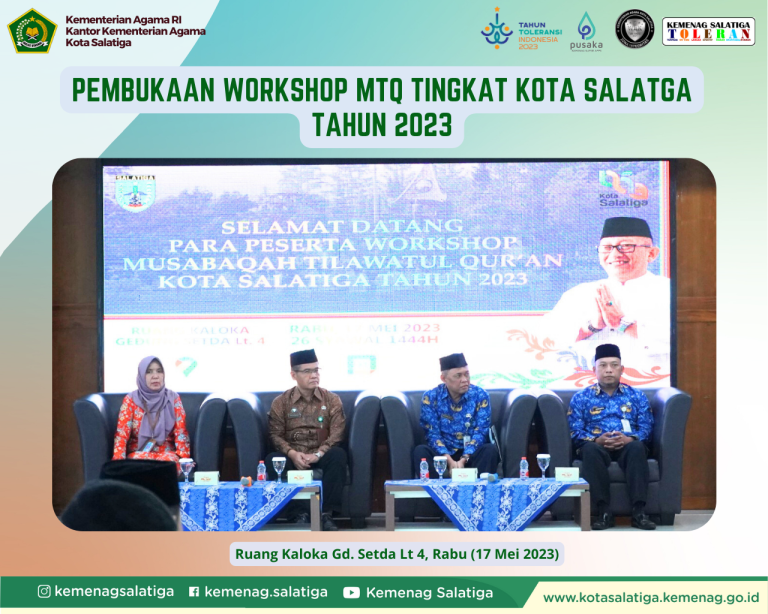RILISJATENG.COM— Kepala Kantor Kementerian Agama Kota Salatiga selaku ketua LPTQ Kota Salatiga, H.Wiharso menghadiri kegiatan pembukaan Workshop Musabaqoh Tilawatil Quran (MTQ) Tingkat Kota Salatiga tahun 2023, bertempat di Ruang Kaloka Gd Setda Lt 4, Rabu (17/5/2023) .