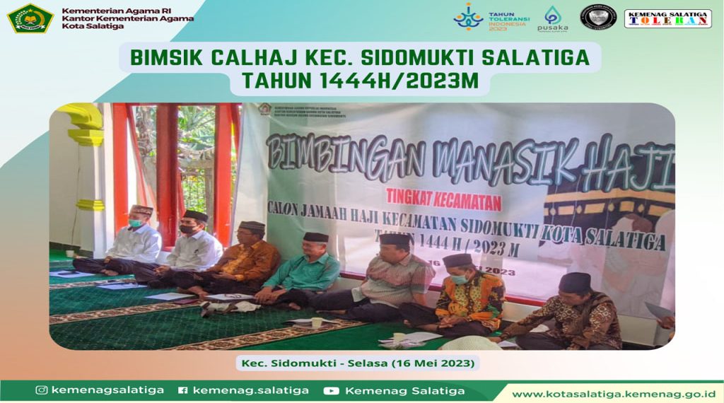 RILISJATENG.COM— Sejumlah 48 orang calon jamaah haji di wilayah Kecamatan Sidomukti mengikuti kegiatan Bimbingan Manasik Haji Tingkat Kecamatan pada Selasa (16/05). Tampak hadir Kepala Kemenag Kota Salatiga, Plt. Kasi PHU, Kepala KUA Sidomukti dan para penyuluh Kecamatan Sidomukti Salatiga.